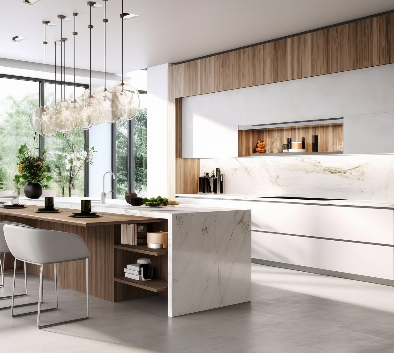 A seamless fusion of modern design and practical storage, crafted to enhance both beauty and efficiency in your kitchen space.